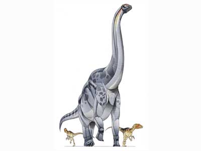 Ultrasauros n’est pas le plus long des dinosaures connus, il est dépassé par Séismosaurus. Mais c’est sans doute le plus lourd (plus de deux fois que Brachiosaurus) et le plus haut. On sait depuis longtemps que les Sauropodes atteignent des dimensions énormes, mais la découverte de trois nouveaux genres (Supersaurus, Ultrasauros, Séismosaurus) a fait pâlir tous les records. Ultrasauros n’est connu que par un membre antérieur. La forme de son omoplate révèle une étroite parenté avec Brachiosaurus. C’est d’après ce dernier qu’on a estimé ses dimensions : plus de 30 m de long et un poids de 130 tonnes (un éléphant ne pèse « que » 5 tonnes). Ce gigantesque herbivore habitait les plaines alluviales d’Amérique du Nord. Avec son cou, qui pouvait dépasser 10 m, il pouvait brouter les feuillages situés à une quinzaine de mètres de haut.